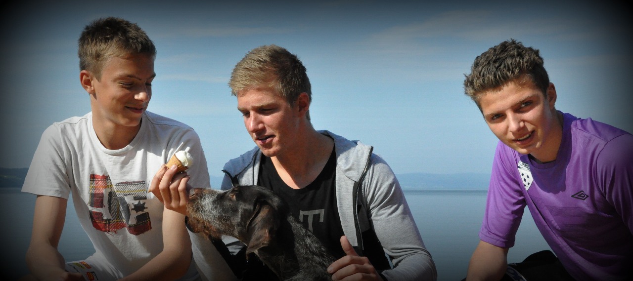 Litt om oss. Vi bor på Viggja en liten plass mellom Trondheim og Orkanger. En perle av et sted helt nedi fjæresteinene hvor vi bor med våre tre sønner, Joakim, Tage og Stian. For gutta er det bare fotball, turn og klatring som teller om dagen. Geir jobber offshore som vedlikehold og modifikasjons- leder og er 14 dager ute og 4 uker hjemme, så det er godt om tid til å trene hund i tillegg til oppfølging av guttene våre med treninger og kamper. Siw jobber som barne- og ungdomsarbeider i barnehage på hjemstedet vårt. Vi bor bare minutter unna skogen og fjellet som vi bruker flittig både til frilufts- og treningsturer med hund. Vi har opp gjennom tiden hatt seks strihårede vorstehhunder og fem andre hunderaser. Mer om dem finner dere under Våre hunder på menyen.